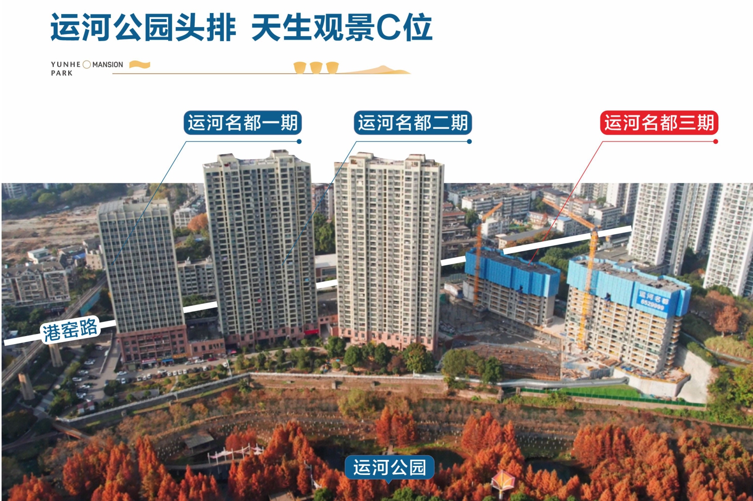31公里运河最美段 ,180亩城央花园,独宠运河名都。运河公园内置10多个景点。春天,春意盎然,郁郁葱葱;夏天有“接天莲叶无穷碧、映日荷花别样红”的满池荷花和嬉戏玩耍的孩童;最美的当属秋天,成片的池杉陆续由绿变为金黄,再转为褐红,视觉非常震撼;冬天银装素裹,风景如画;四季不同的风景,生活便有了不同的场景。